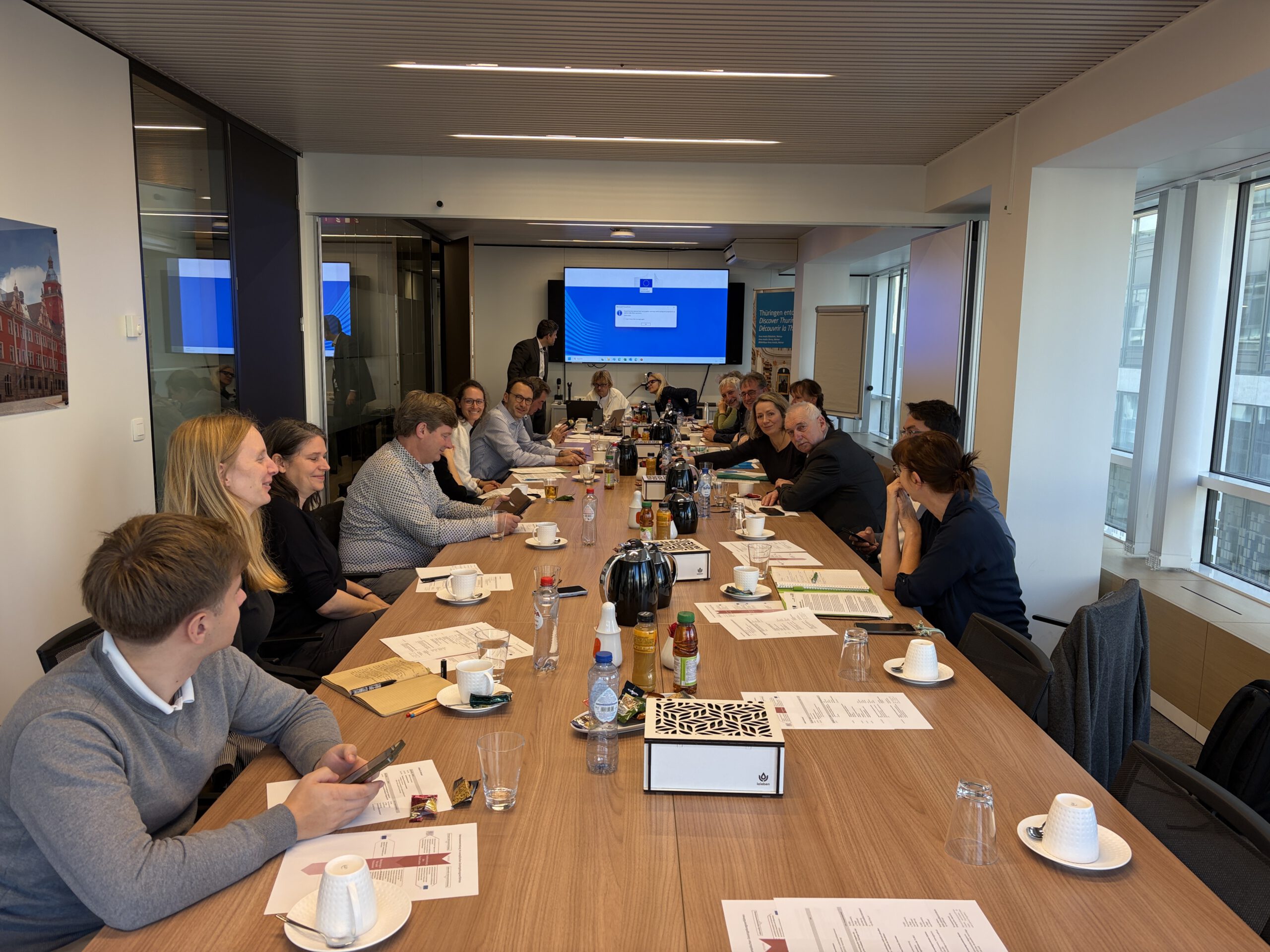 Großes Lob und Dank an Sven Bermig von der Thüringer Landesvertretung, der dabei geholfen hat, die Kontakte zu den gewünschten Gesprächspartnern zu vermitteln. Wir durften einen Raum der Landesvertretung nutzen und wurden super verpflegt. Sven Bermig hat uns über die gesamte Zeit in Brüssel begleitet.